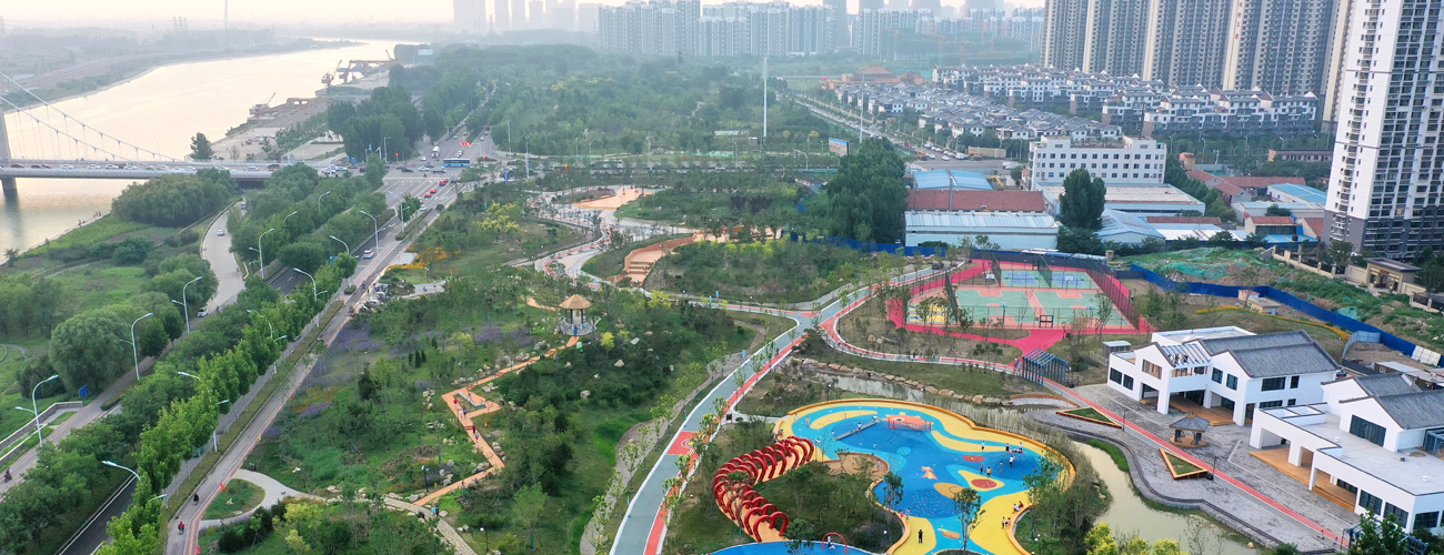 空间主次分明,开合有度,动静相交。给予市民充分的互动空间与设施, 满足康体、游憩、休闲健身的同时,又专门设置儿童活动场地及足球场、篮球场等运动场地。既能满足中老年的“静”生活需求,又让青少年有充分的活动空间,响应党中央体育健身强体的指导精神。在园区内既可以享受亲子互动的天伦之乐,又可以登高赋诗寄情于风月水云之间,追慕古人神游于古运河之上。